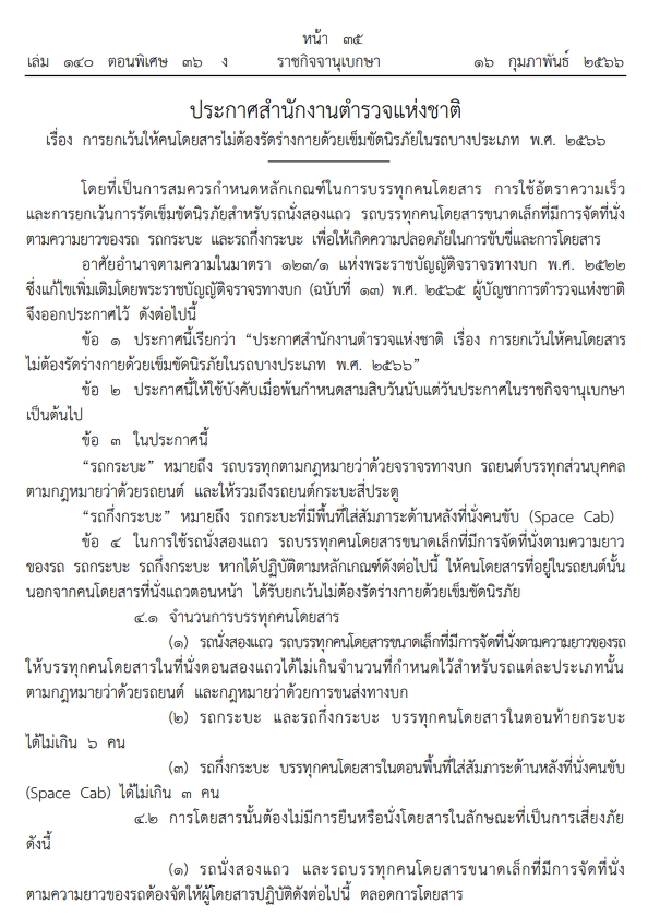 1.เงื่อนไขเฉพาะรถที่ได้รับการเว้นไม่ต้องรัดเข็มขัดนิรภัย